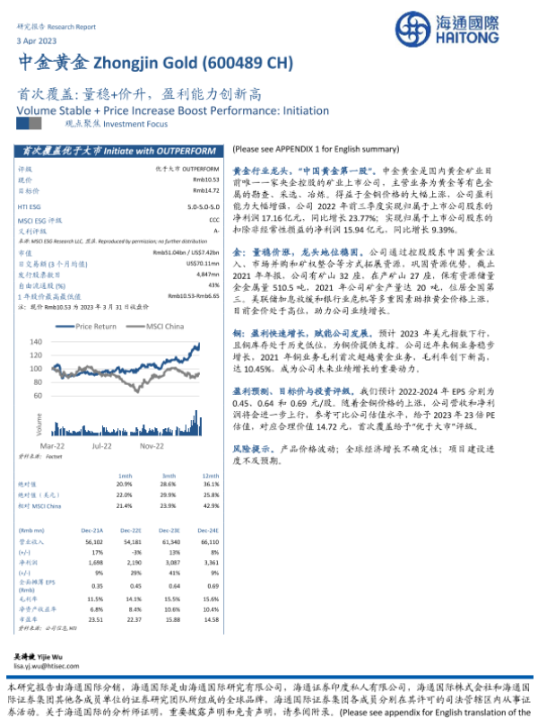 【海通国际】【20230403】20230403-海通国际-中金黄金-600489.SH-首次覆盖:量稳+价升,盈利能力创新高-21页