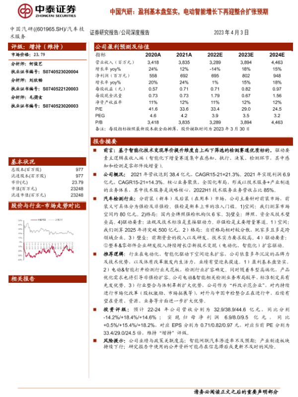 【中泰证券】【20230403】中国汽研:盈利基本盘坚实,电动智能增长下再迎整合扩张预期-25页