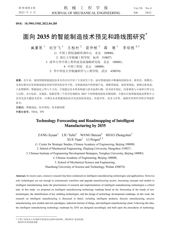 【中国工程院】【202202】面向2035的智能制造技术预见和路线图研究-24页