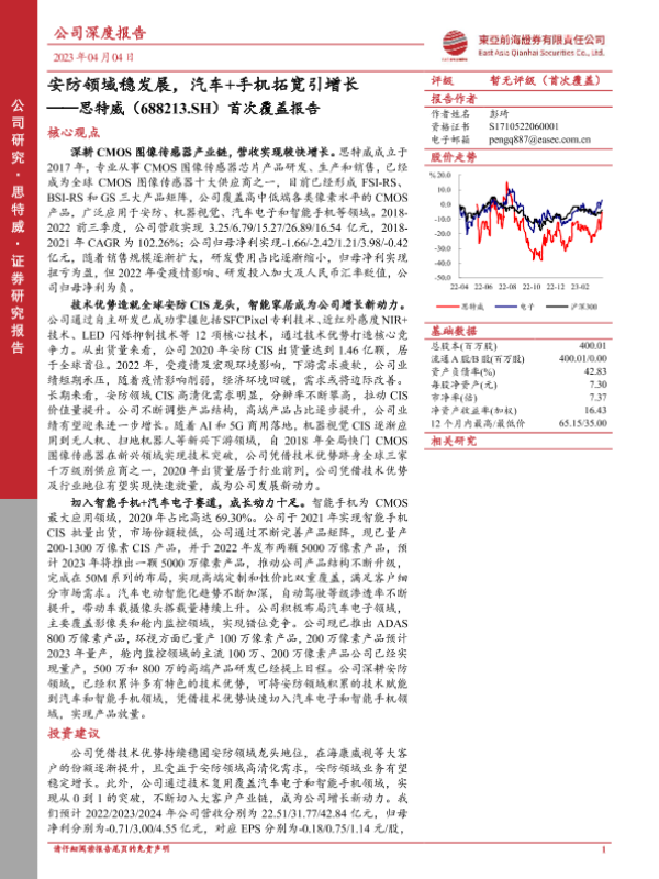 【东亚前海证券】【20230404】20230404-东亚前海证券-思特威-688213.SH-首次覆盖报告:安防领域稳发展,汽车+手机拓宽引增长-41页