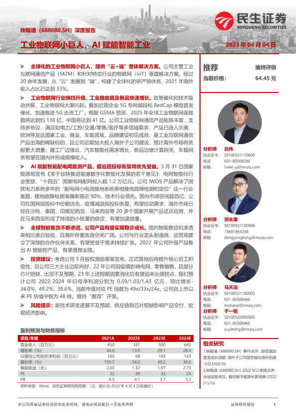 【民生证券】【20230404】20230404-民生证券-映翰通-688080.SH-深度报告:工业物联网小巨人,AI赋能智能工业-28页