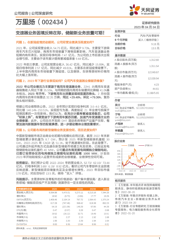 【天风证券】【20230404】20230404-天风证券-万里扬-002434.SZ-变速器业务困境反转在即,储能新业务放量可期!-18页