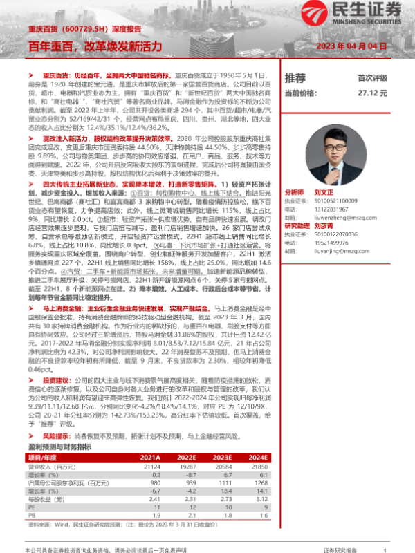 【民生证券】【20230404】20230404-民生证券-重庆百货-600729.SH-深度报告:百年重百,改革焕发新活力-36页