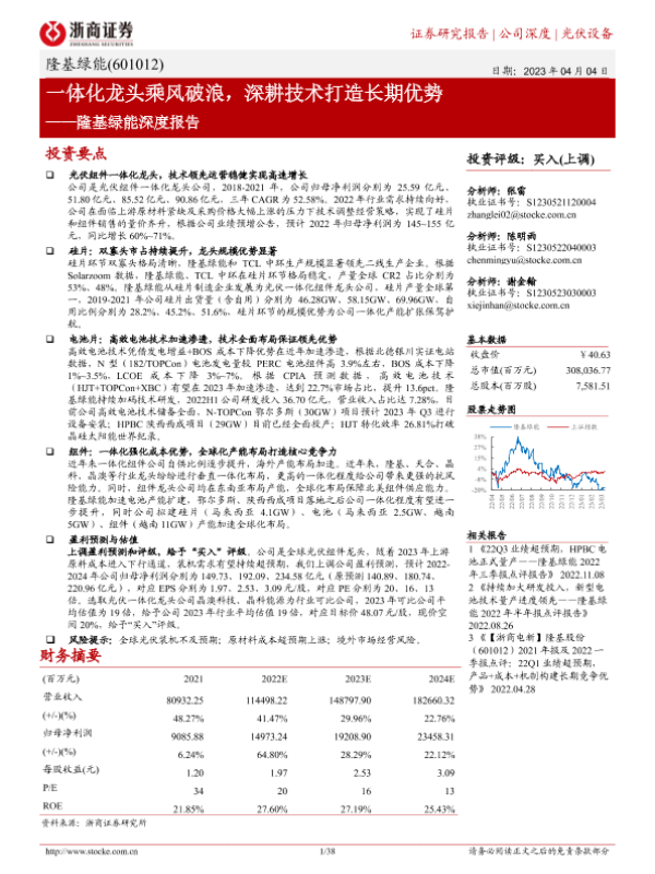 【浙商证券】【20230404】隆基绿能深度报告:一体化龙头乘风破浪,深耕技术打造长期优势-38页