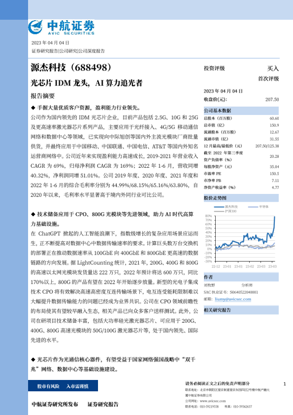 【中航证券】【20230404】源杰科技-光芯片IDM龙头,AI算力追光者-32页