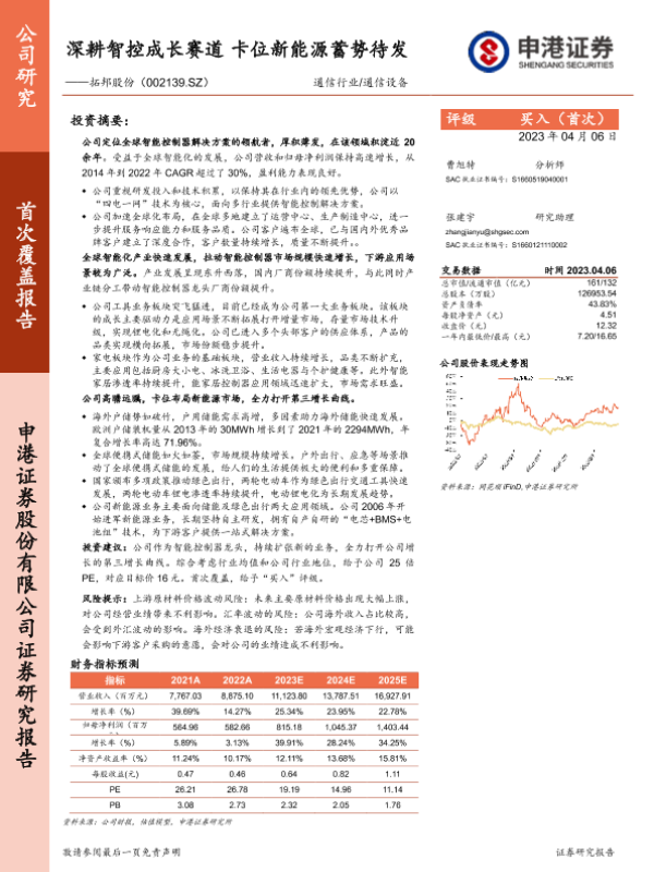 【申港证券】【20230406】深耕智控成长赛道 卡位新能源蓄势待发——拓邦股份(002139.SZ)-31页