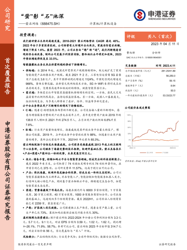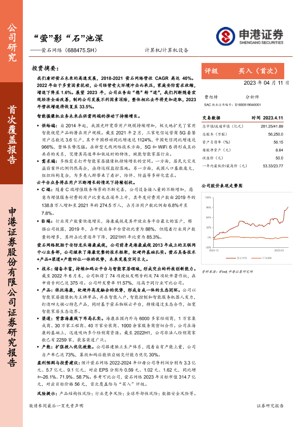 【申港证券】【20230411】“萤”影“石”池深——萤石网络(688475.SH)-32页