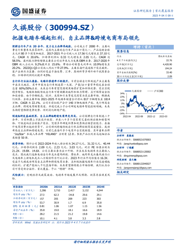 【国盛证券】【20230409】久祺股份:把握电踏车崛起红利,自主品牌&跨境电商布局领先-41页