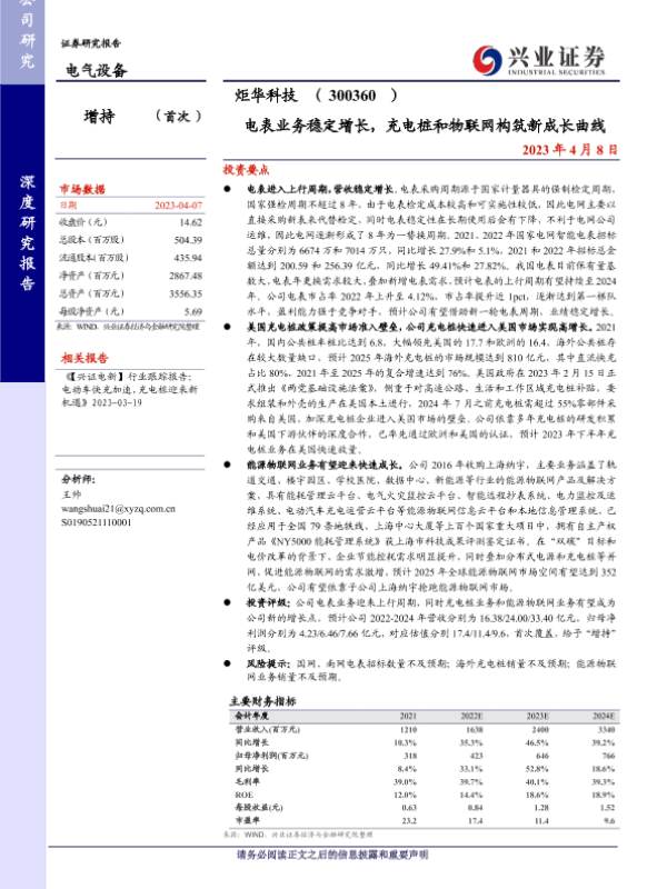 【兴业证券】【20230408】电表业务稳定增长,充电桩和物联网构筑新成长曲线-23页