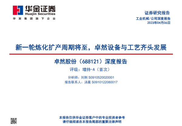 【华金证券】【20230406】卓然股份深度报告:新一轮炼化扩产周期将至,卓然设备与工艺齐头发展-40页