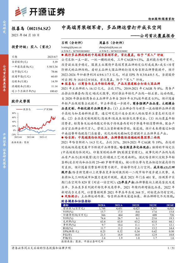 【开源证券】【20230410】20230410-开源证券-报喜鸟-002154.SZ-公司首次覆盖报告:中高端男装领军者,多品牌运营打开成长空间-51页