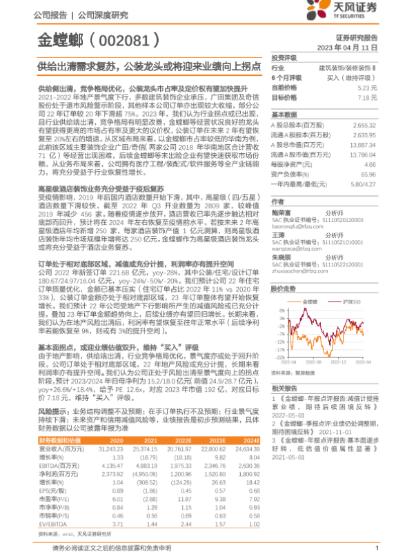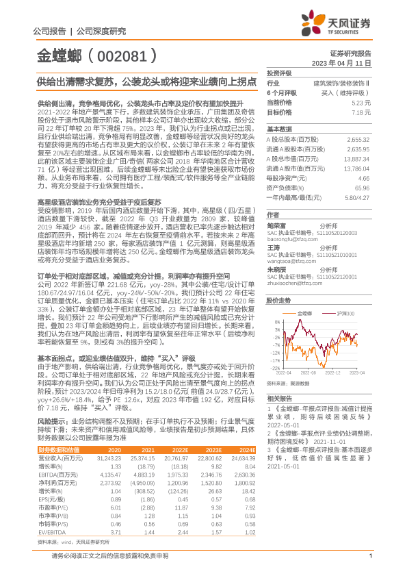【天风证券】【20230411】供给出清需求复苏,公装龙头或将迎来业绩向上拐点-13页