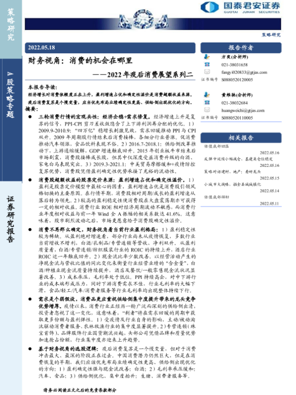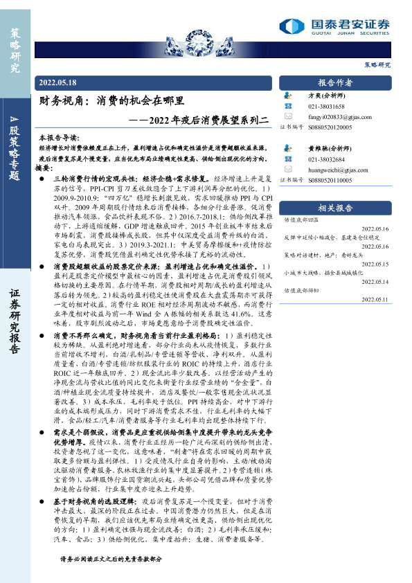 【国泰君安证券】【20220518】2022年疫后消费展望系列二:财务视角,消费的机会在哪里-16页
