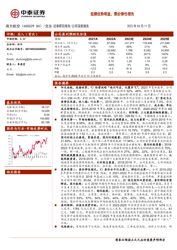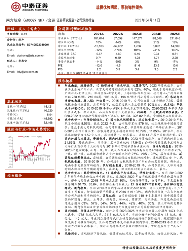 【中泰证券】【20230411】20230411-中泰证券-南方航空-600029.SH-规模优势明显,票价弹性领先-34页