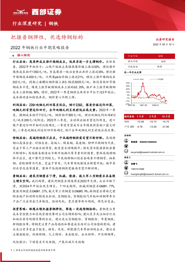 【西部证券】【20220515】2022年钢铁行业中期策略报告:把握普钢弹性,优选特钢标的-27页