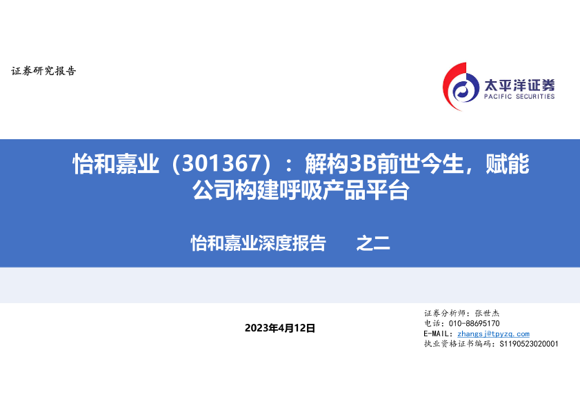 【太平洋证券】【20230412】20230412-太平洋-怡和嘉业-301367.SZ-怡和嘉业深度报告之二:解构3B前世今生,赋能公司构建呼吸产品平台-25页