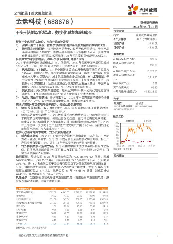 【天风证券】【20230412】金盘科技-干变+储能双轮驱动,数字化赋能加速成长-38页