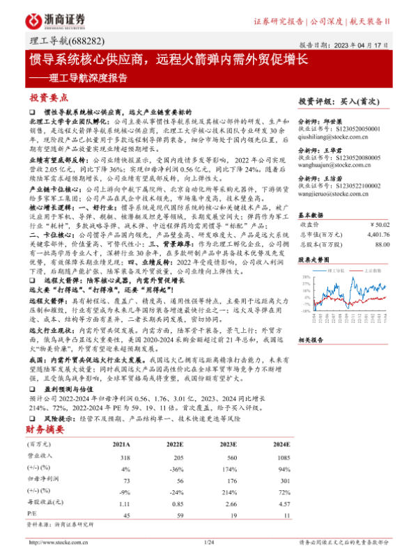 【浙商证券】【20230417】理工导航深度报告:惯导系统核心供应商,远程火箭弹内需外贸促增长-24页