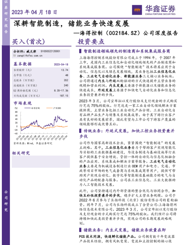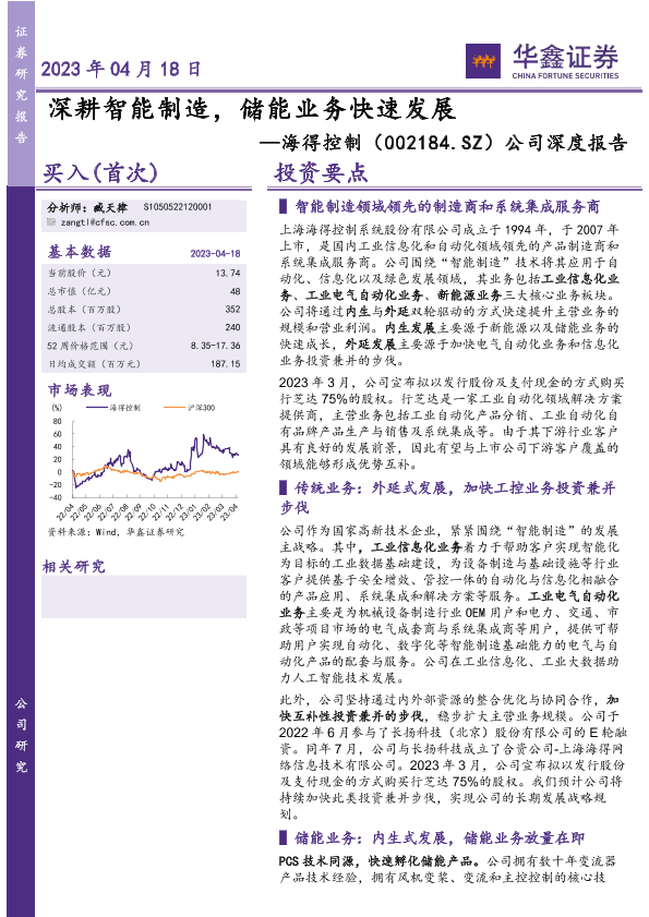 【华鑫证券】【20230418】深耕智能制造,储能业务快速发展—海得控制(002184.SZ)公司深度报告-23页