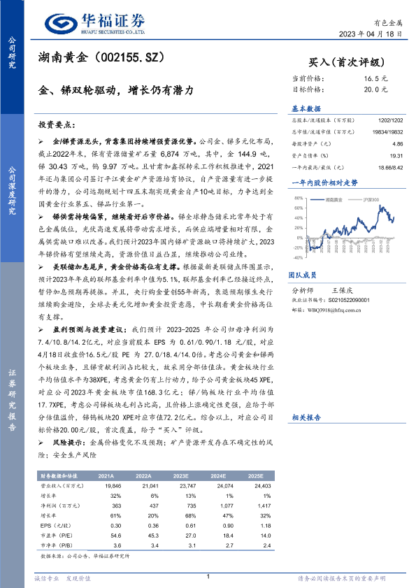 【华福证券】【20230418】湖南黄金(002155.SZ)金、锑双轮驱动,增长仍有潜力-25页