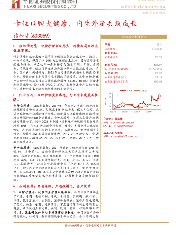 ODM 口腔护理 市场分析 竞争优势 财务预测