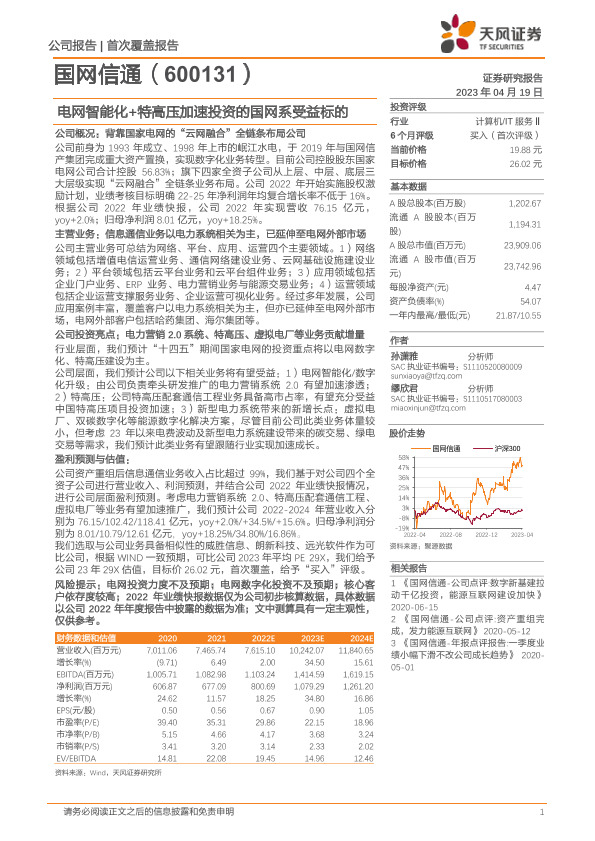 【天风证券】【20230419】国网信通-600131.SH-电网智能化+特高压加速投资的国网系受益标的-27页
