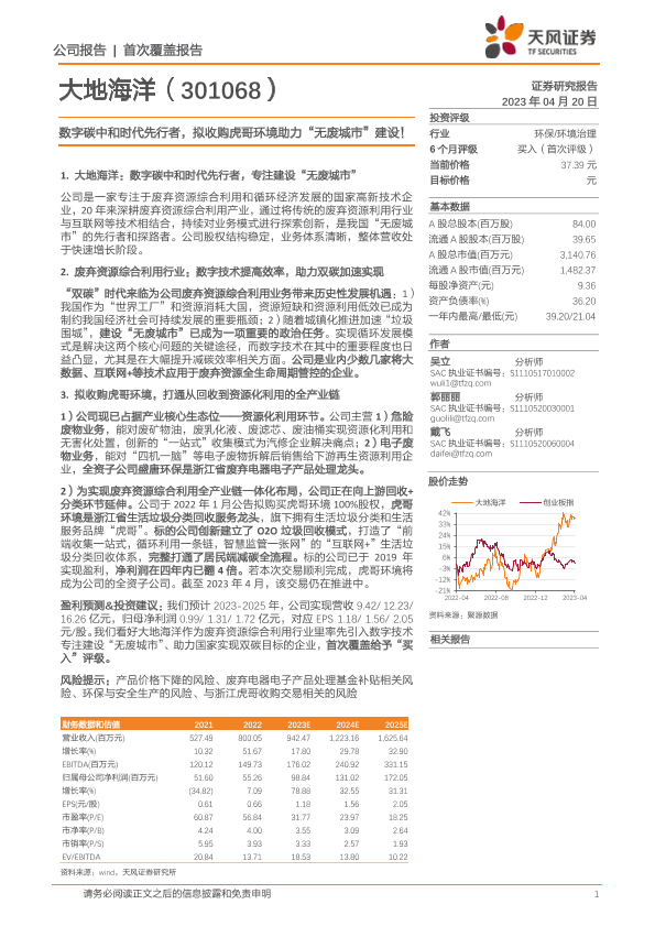 【天风证券】【20230420】数字碳中和时代先行者,拟收购虎哥环境助力“无废城市”建设!-29页