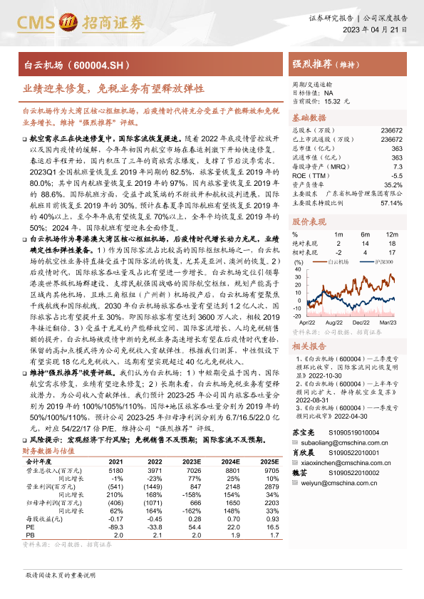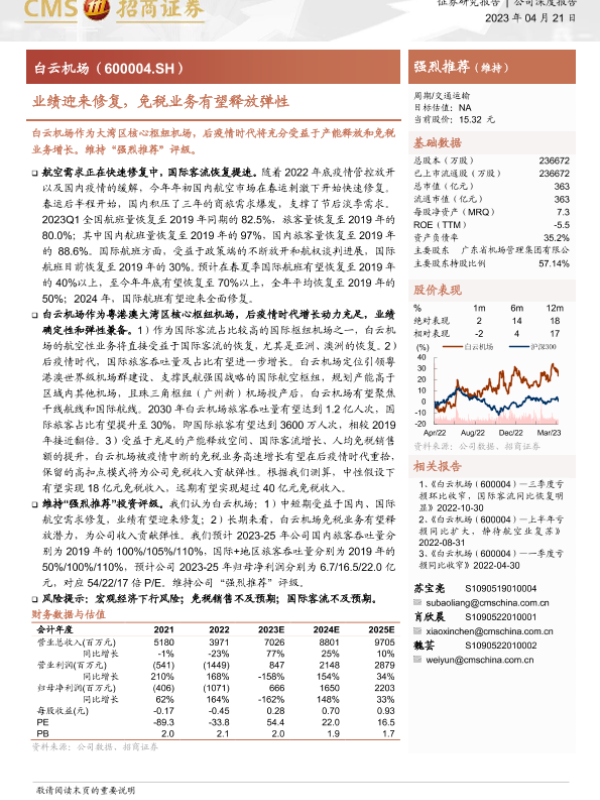 业绩修复 免税业务 大湾区 白云机场 航空需求