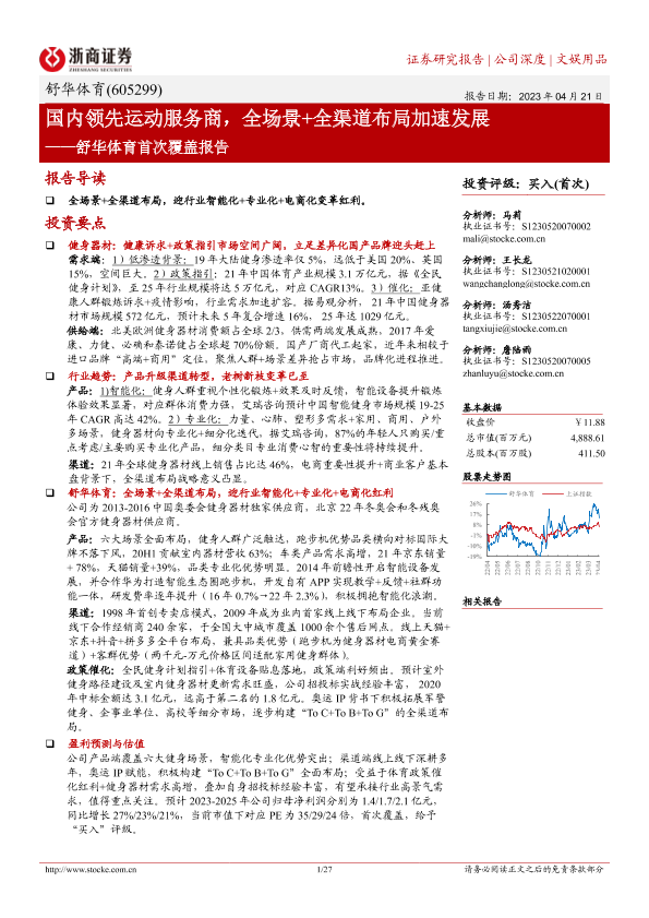 【浙商证券】【20230421】舒华体育首次覆盖报告:国内领先运动服务商,全场景+全渠道布局加速发展-27页