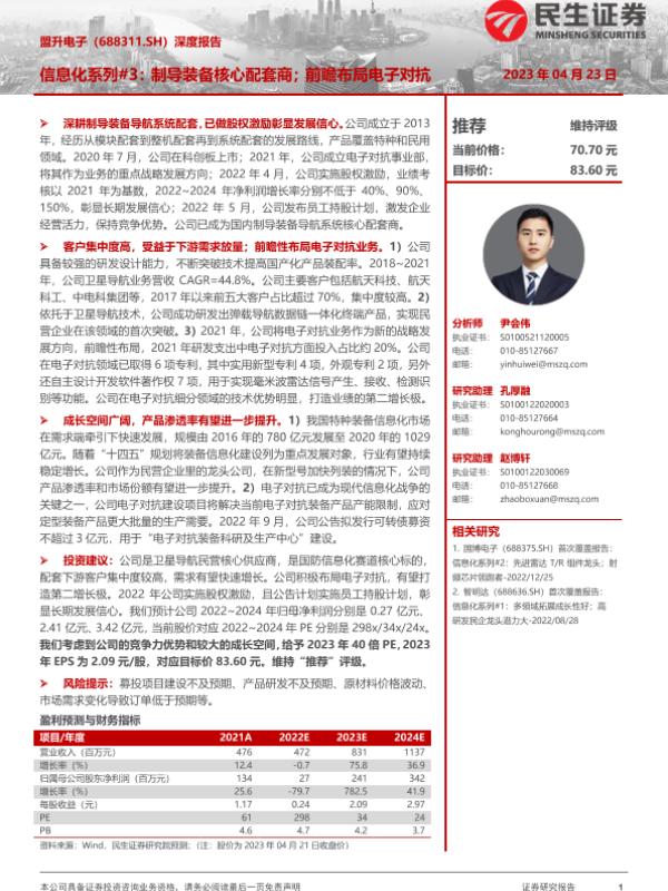 【民生证券】【20230423】20230423-民生证券-盟升电子-688311.SH-深度报告:信息化系列#3:制导装备核心配套商;前瞻布局电子对抗-27页