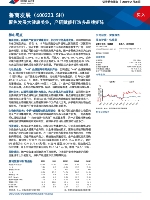 化妆品 大健康美业 生物医药 股权激励 鲁商发展