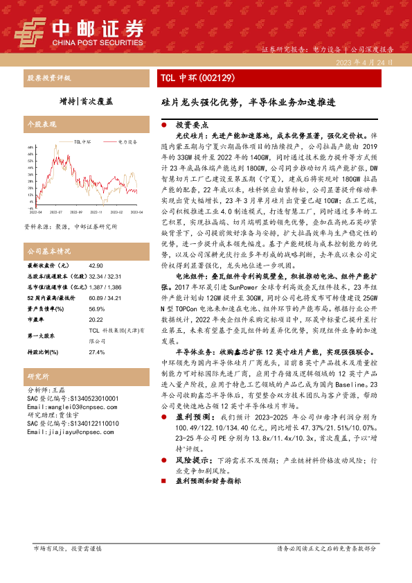 【中邮证券】【20230424】20230424-中邮证券-TCL中环-002129.SZ-硅片龙头强化优势,半导体业务加速推进-22页