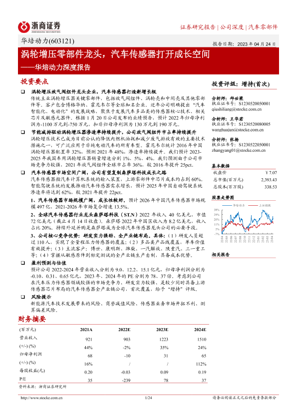 【浙商证券】【20230424】华培动力深度报告:涡轮增压零部件龙头,汽车传感器打开成长空间-24页