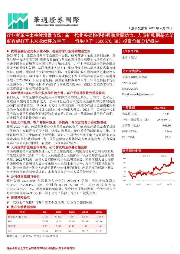 【华通证券国际】【20230425】行业变革带来持续增量市场,新一代业务架构提供强劲发展动力,人员扩张期基本结束有望打开未来业绩释放空间——恒生电子(600570.SH)投资价值分析报告-30页
