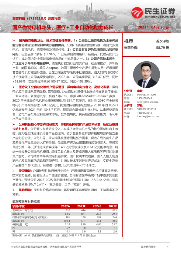 【民生证券】【20230426】国产微特电机龙头,医疗+工业自动化助力成长-29页