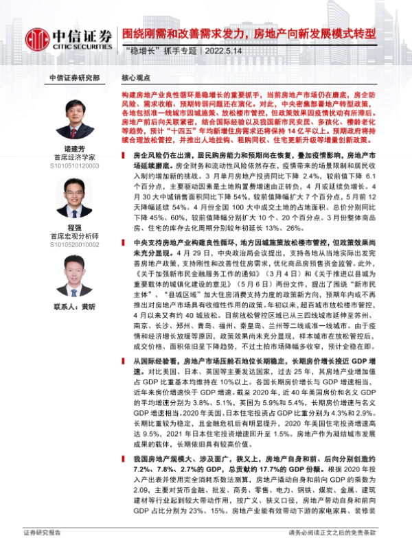 【中信证券】【20220514】'稳增长'抓手专题:围绕刚需和改善需求发力,房地产向新发展模式转型-22页