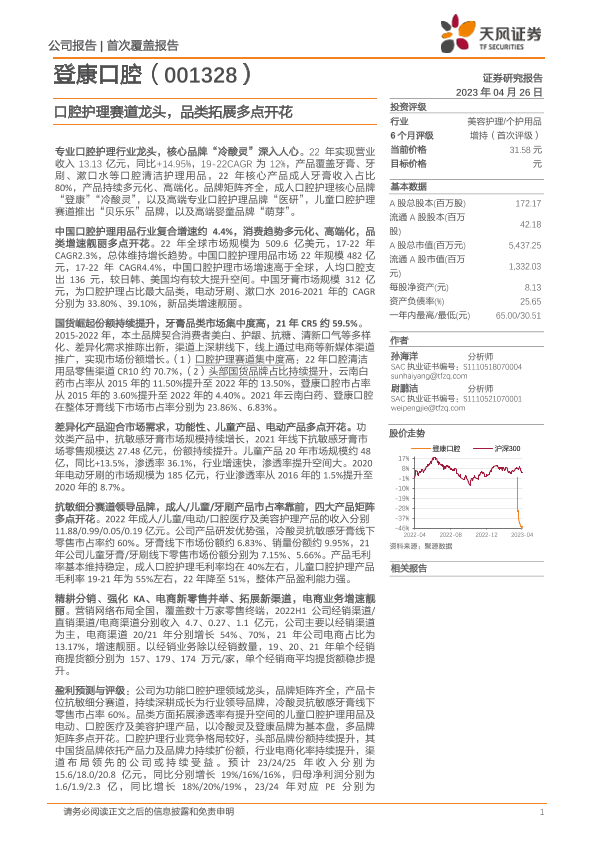 【天风证券】【20230426】20230426-天风证券-登康口腔-001328.SZ-口腔护理赛道龙头,品类拓展多点开花-28页