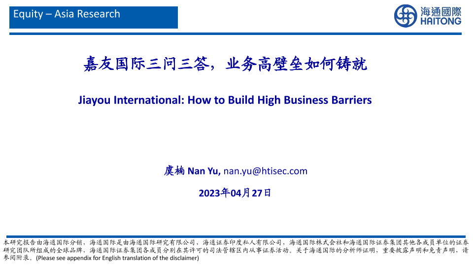 【海通国际】【20230427】嘉友国际三问三答,业务高壁垒如何铸就-40页