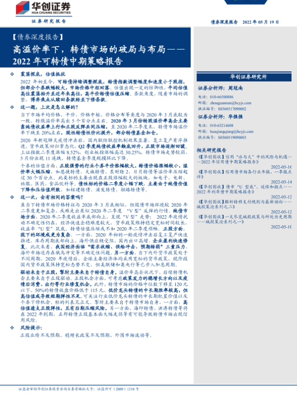 【华创证券】【20220519】2022年可转债中期策略报告:高溢价率下,转债市场的破局与布局-22页