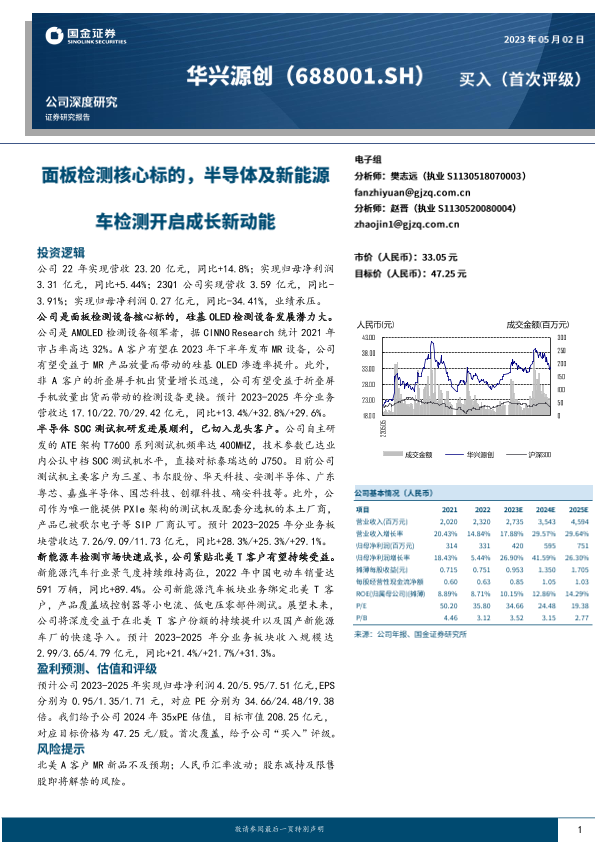 【国金证券】【20230502】华兴源创-688001.SH-面板检测核心标的,半导体及新能源车检测开启成长新动能-30页