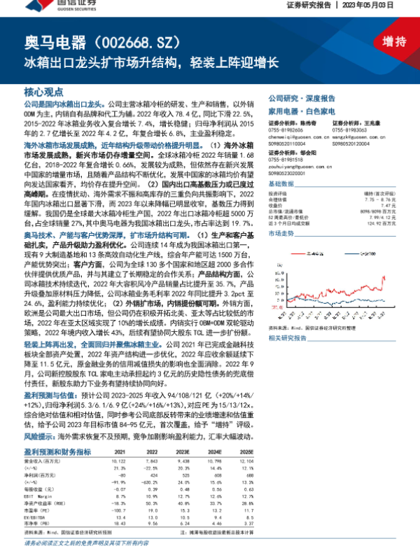 【国信证券】【20230503】奥马电器-002668.SZ-冰箱出口龙头扩市场升结构,轻装上阵迎增长-26页
