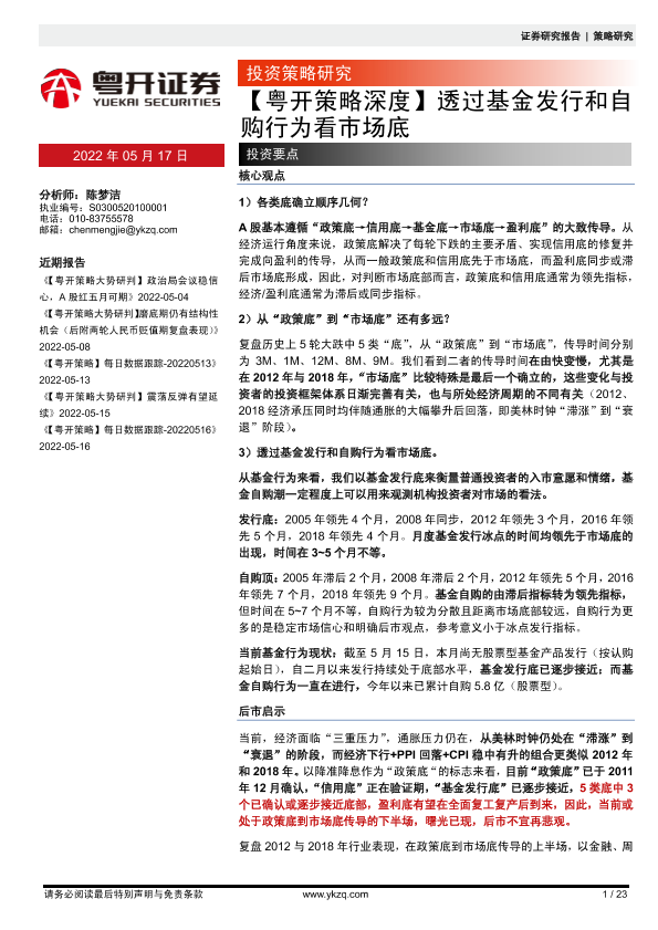 【粤开证券】【20220517】透过基金发行和自购行为看市场底-23页