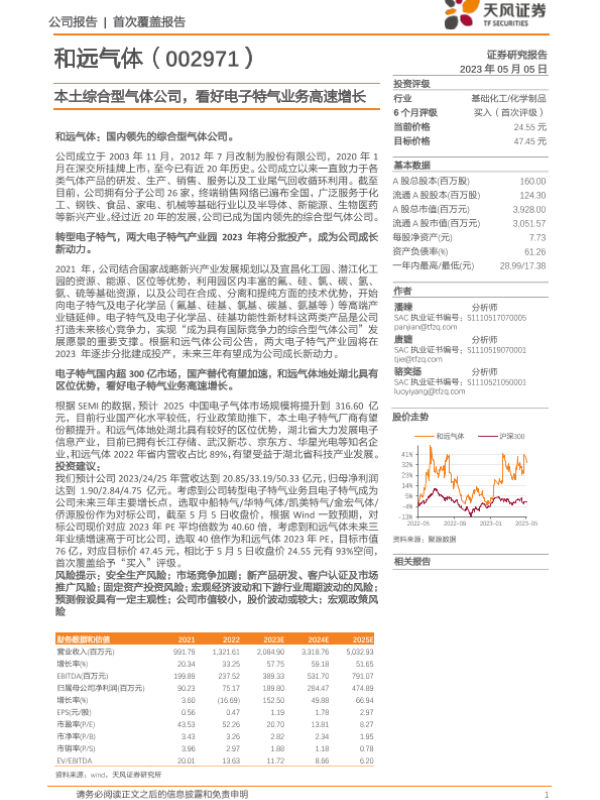 【天风证券】【20230505】本土综合型气体公司,看好电子特气业务高速增长-22页