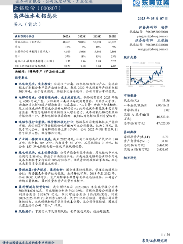 【东吴证券】【20230507】云铝股份-高弹性水电铝龙头-30页