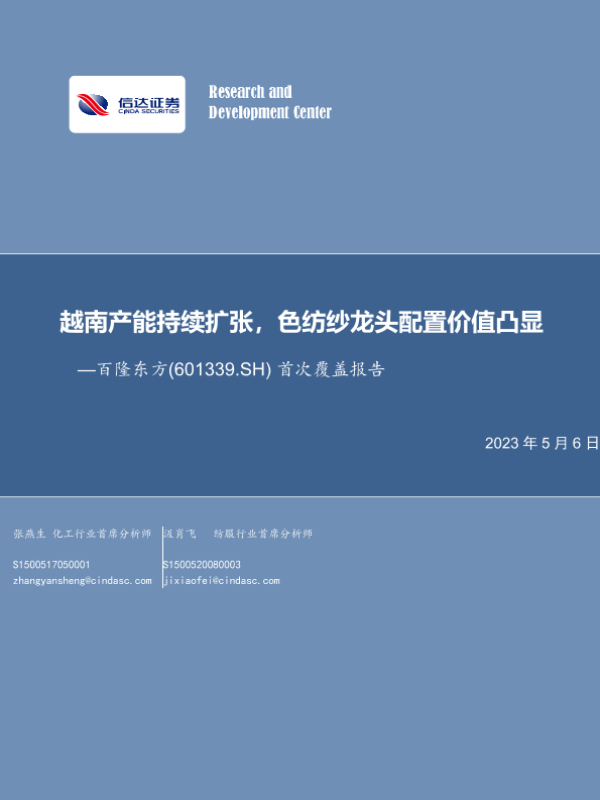 【信达证券】【20230506】20230506-信达证券-百隆东方-601339.SH-首次覆盖报告:越南产能持续扩张,色纺纱龙头配置价值凸显-26页