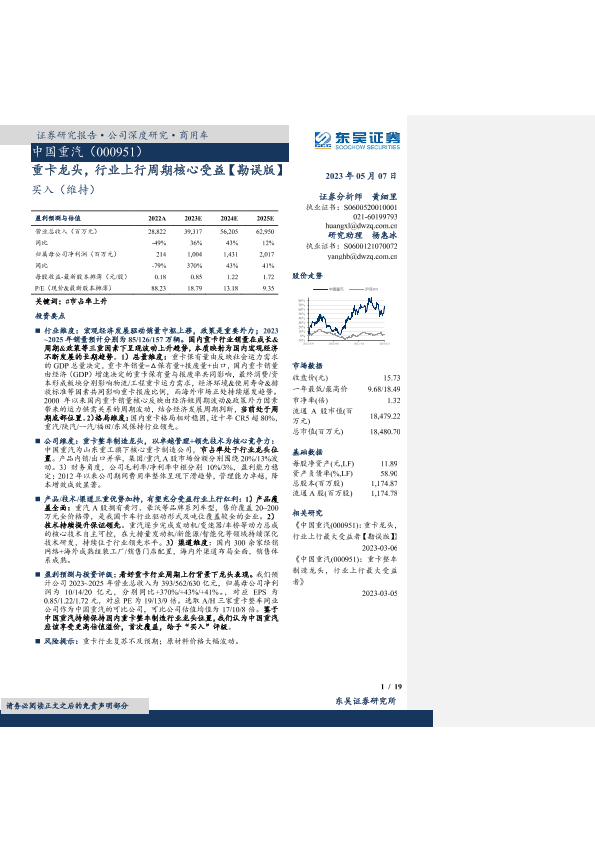 【东吴证券】【20230507】中国重汽(000951)重卡龙头,行业上行周期核心受益【勘误版】-19页