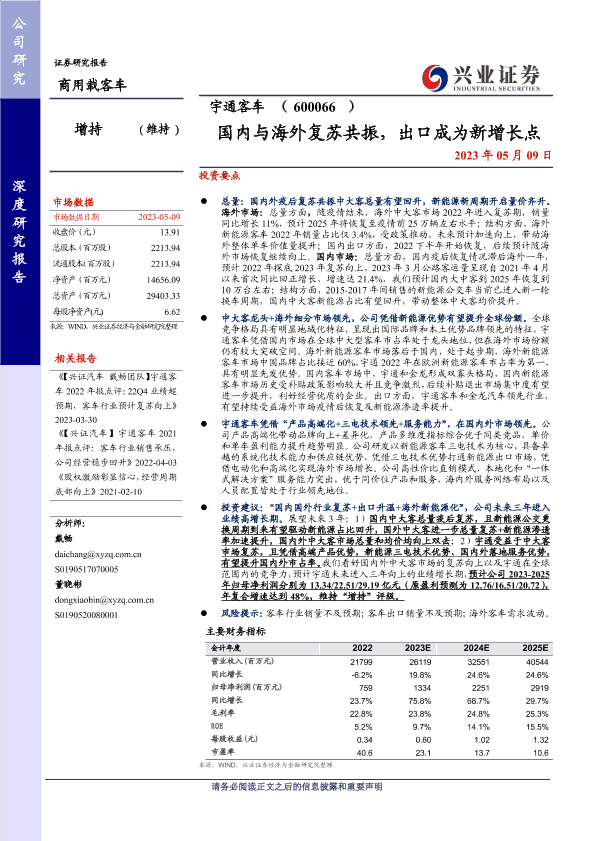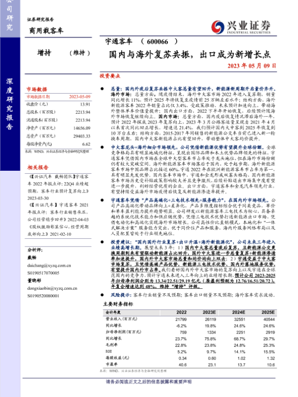 业绩预测 宇通客车 客车行业 新能源客车 海外市场