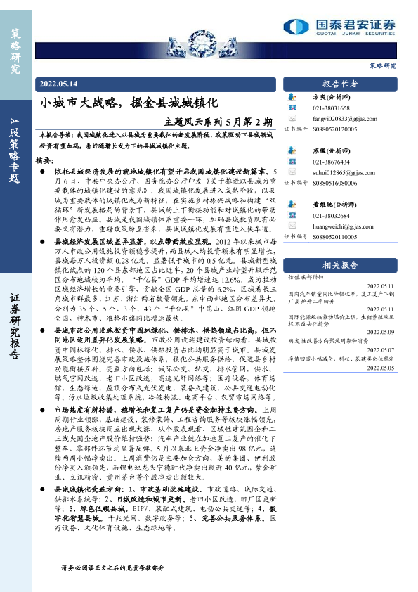 【国泰君安证券】【20220514】小城市大战略,掘金县城城镇化-18页