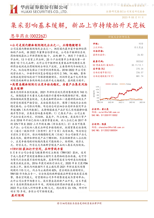 【华西证券】【20230511】集采影响基本缓解,新品上市持续抬升天花板-25页
