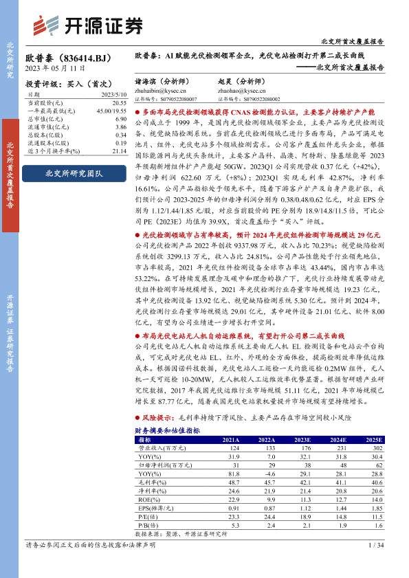 【开源证券】【20230511】欧普泰:AI赋能光伏检测领军企业,光伏电站检测打开第二成长曲线-34页